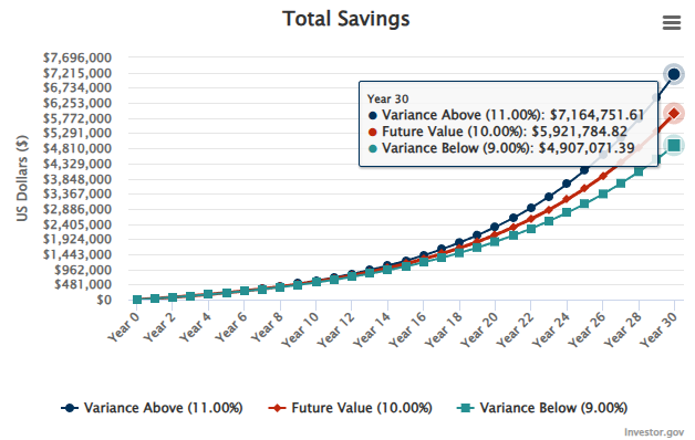 We charge a transparent flat fee — not a percentage of your net worth. A 1% AUM fee may not seem significant early on, but over a 30–40 year investing career it can reduce long-term growth by hundreds of thousands — and often over $1 million. The chart shows why: investing $3,000 per month for 30 years at 10% growth reaches roughly $5.9 million, but a return closer to 9% ends around $4.9 million. That missing $1 million isn’t just fees — it’s lost compounding. This is exactly why The Compounding Co. was founded.